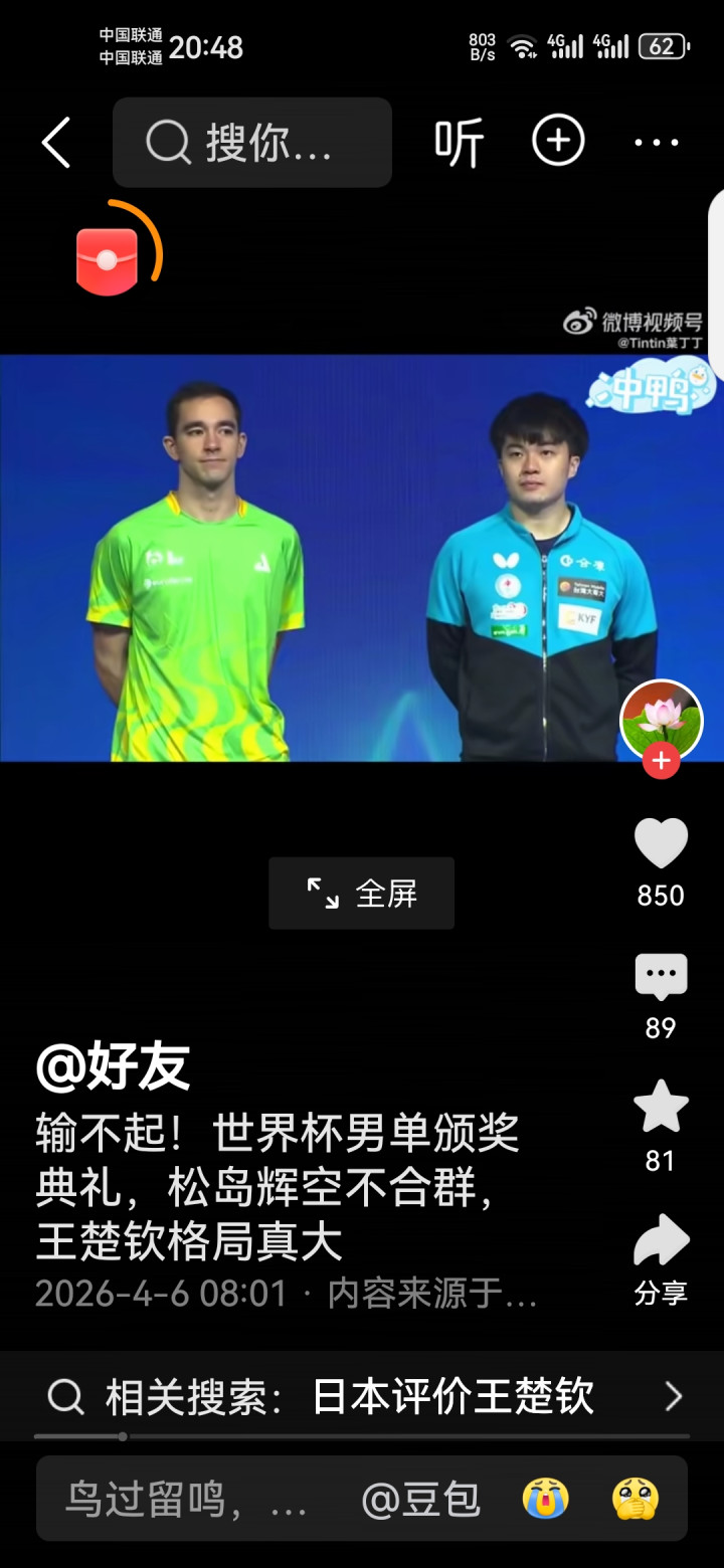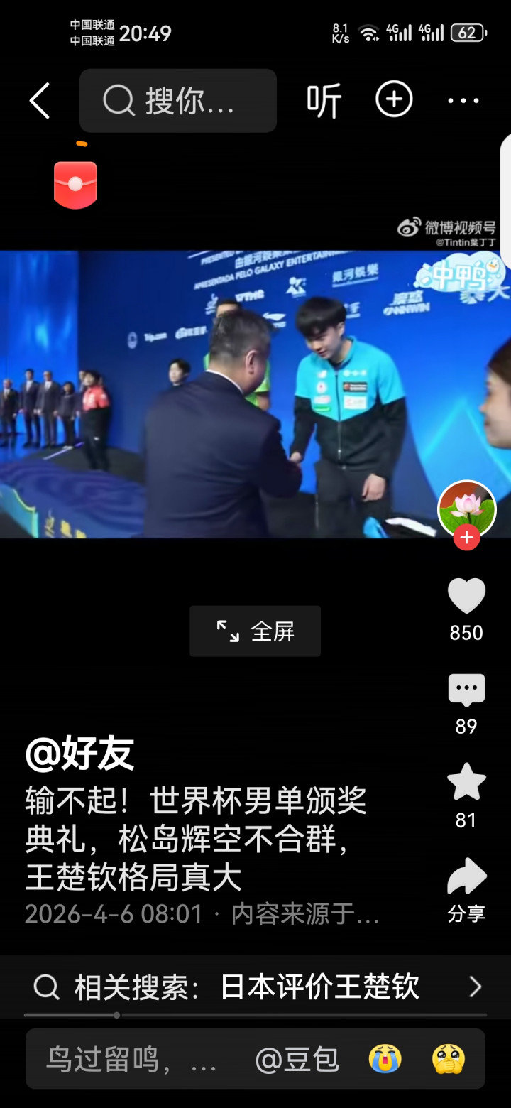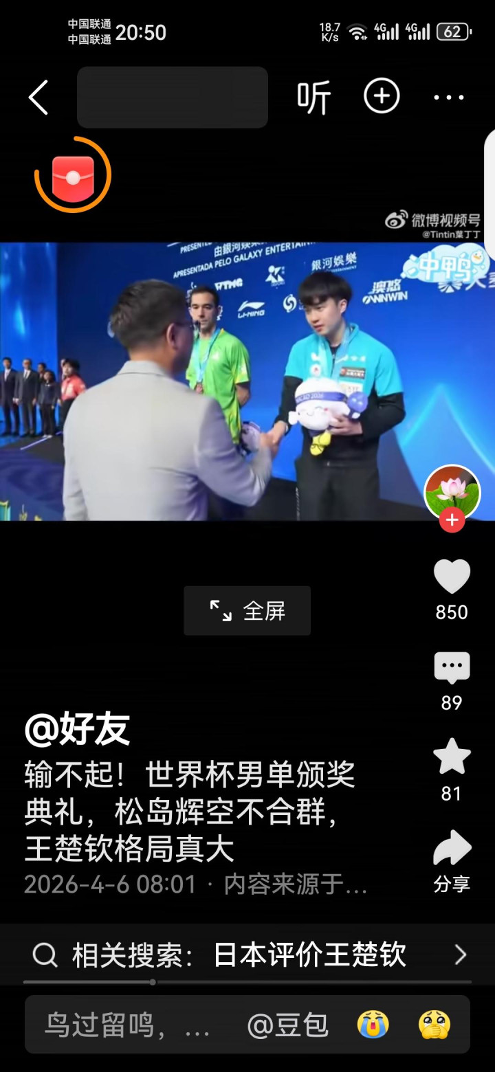 真确的袼褙,赢要获取率直,输要输多礼面。王楚钦逆转夺冠后依旧保持仪态,这才是国乒的姿色!你以为松岛辉空是真秉性,仍是没领导?挑剔区说说你的认识!
