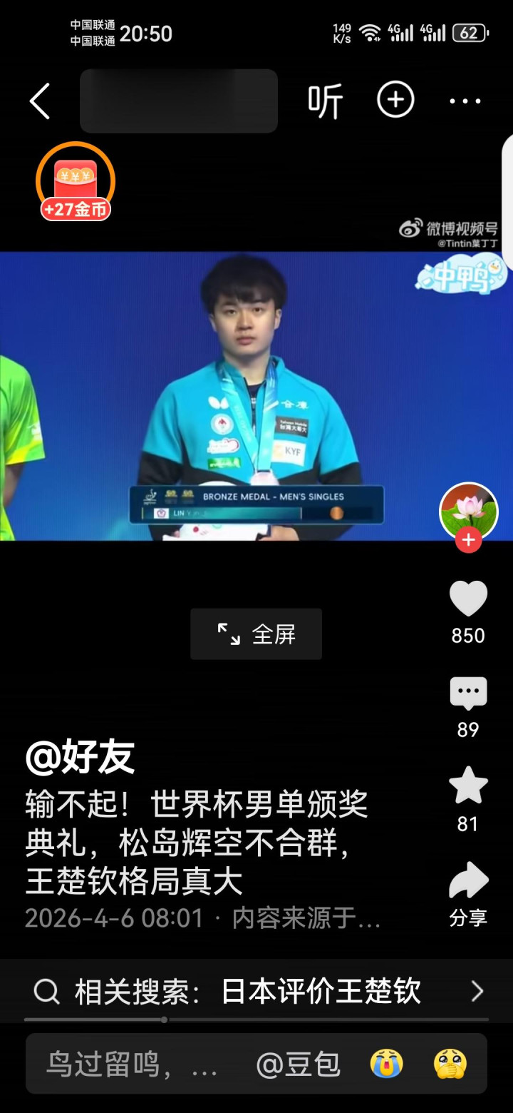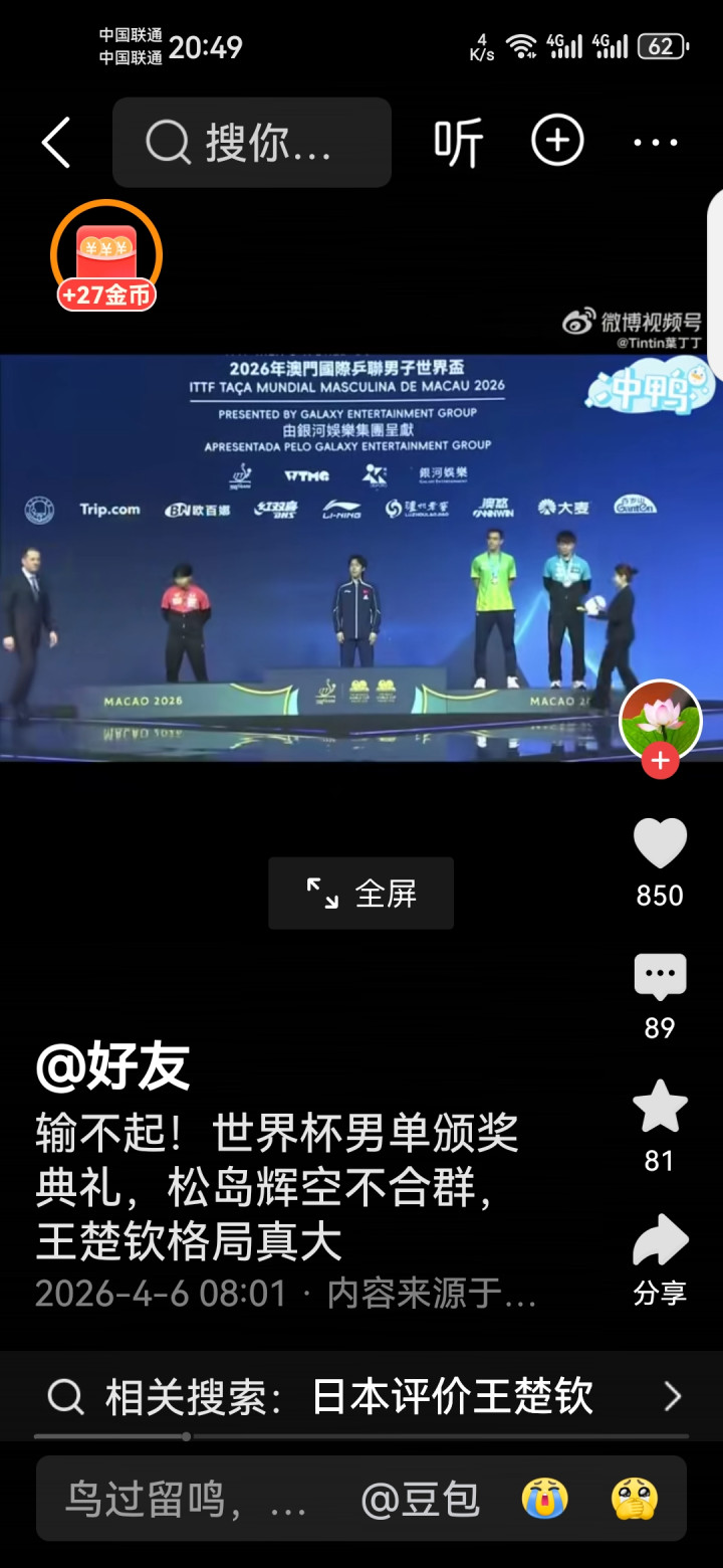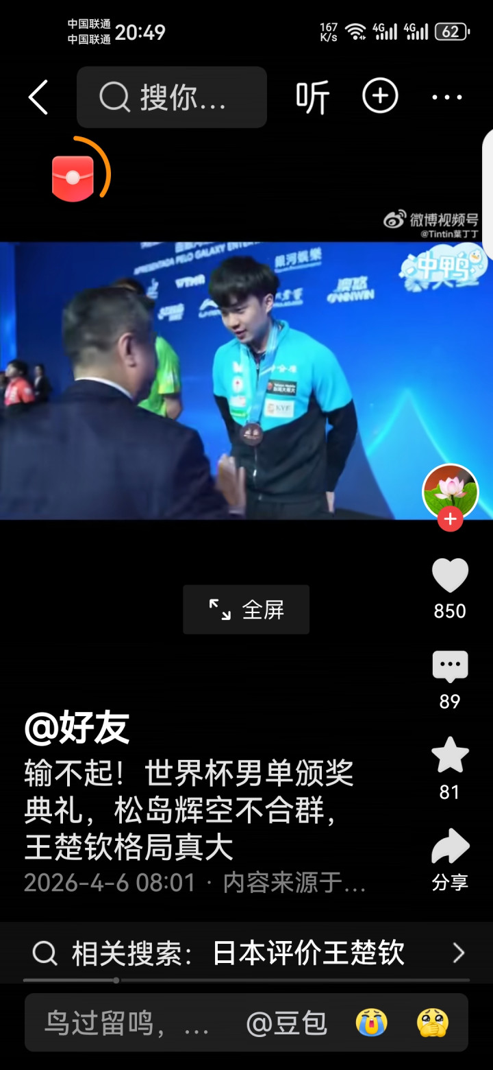 真确的袼褙,赢要获取率直,输要输多礼面。王楚钦逆转夺冠后依旧保持仪态,这才是国乒的姿色!你以为松岛辉空是真秉性,仍是没领导?挑剔区说说你的认识!
