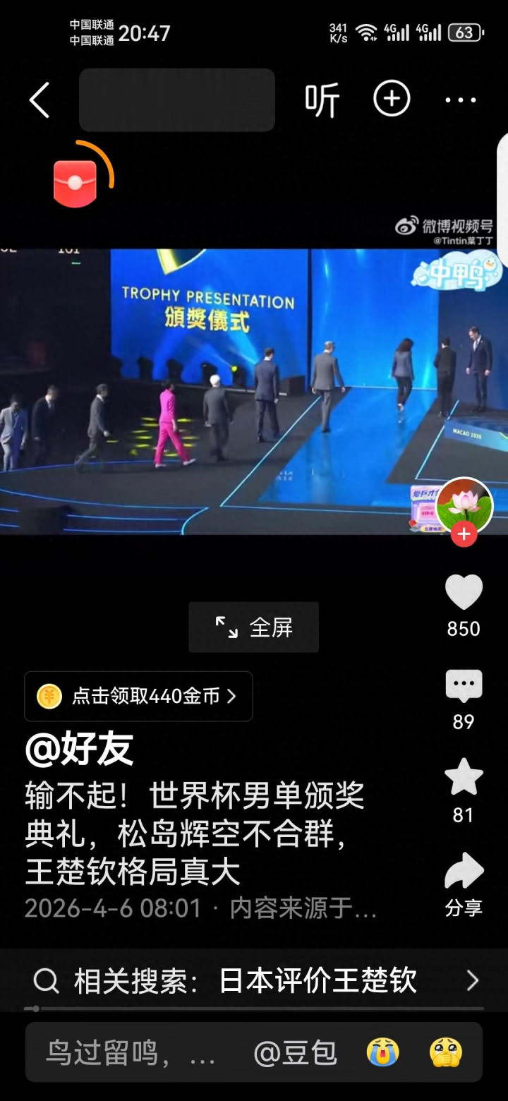 澳门寰宇杯男单决赛休止,王楚钦4-3极限逆转松岛辉空,首夺寰宇杯冠军!夺冠片刻他躺地咆哮、眼含热泪,这份荣耀艰苦选藏,可授奖礼上的一幕,却让全网炸了锅。