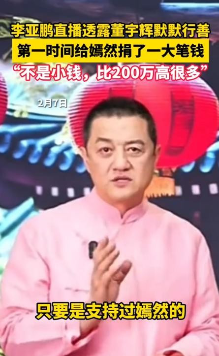 两东说念主其实度外之人,也没什么交情,但董宇辉二话不说,径直给嫣然基金捐了一大笔钱,李亚鹏诚然没说具体数字,但披露“充足不是少量目,远超200万”。