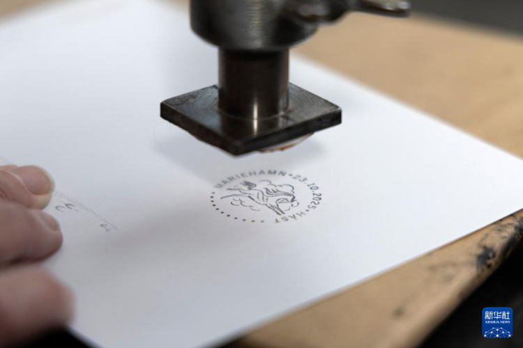 1月21日,在位于芬兰奥兰群岛自治区首府玛丽港市的奥兰群岛邮政署总部,责任主说念主员为一张明信片盖上马年生肖主题钤记。新华社发(马蒂·马蒂凯宁摄)