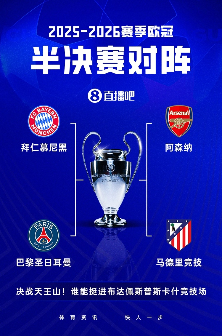 04月16日讯 欧冠1/4决赛一起收官,本赛季欧冠四强名单负责揭晓,英超阿森纳、德甲拜仁、西甲马竞、法甲巴黎四支球队收效解围,联袂晋级半决赛。值得热爱的是,四强球队碰巧分袂来自英、德、西、法四大欧洲顶级联赛。
